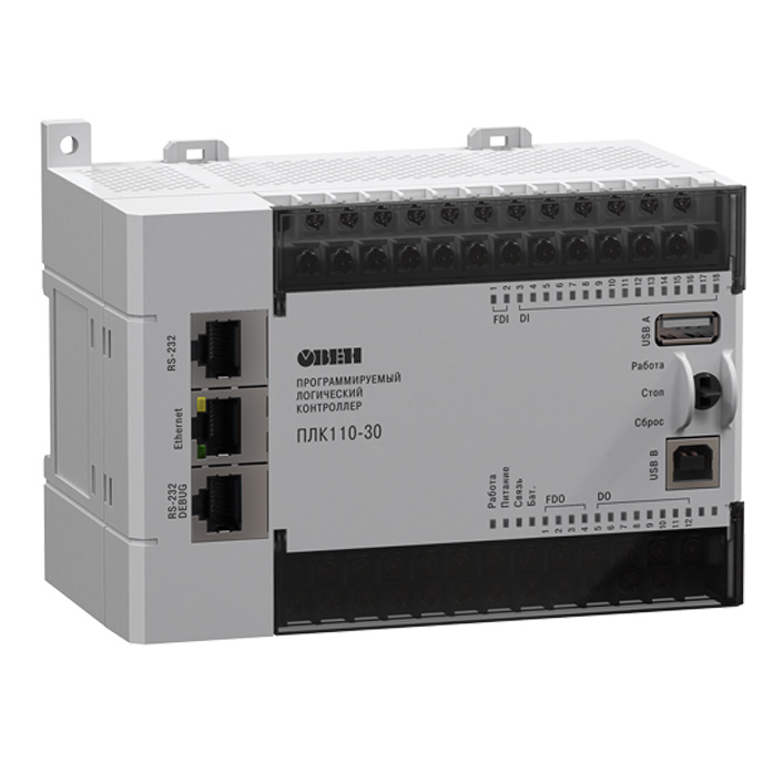 ОВЕН ПЛК110[М02] – линейка программируемых моноблочных контроллеров с дискретными входами/выходами на борту для автоматизации средних систем.